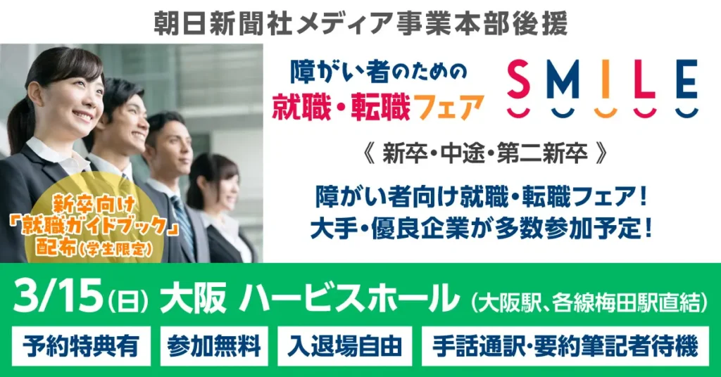 - 名称: 障がい者のための就職・転職フェア SMILE(大阪)